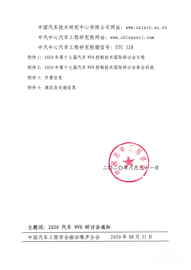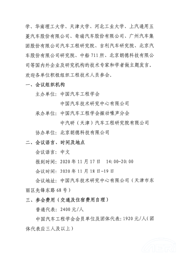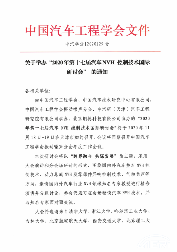 關(guān)于舉辦“2020年第十七屆汽車(chē)NVH 控制技術(shù)國際研討會(huì )” 的通知