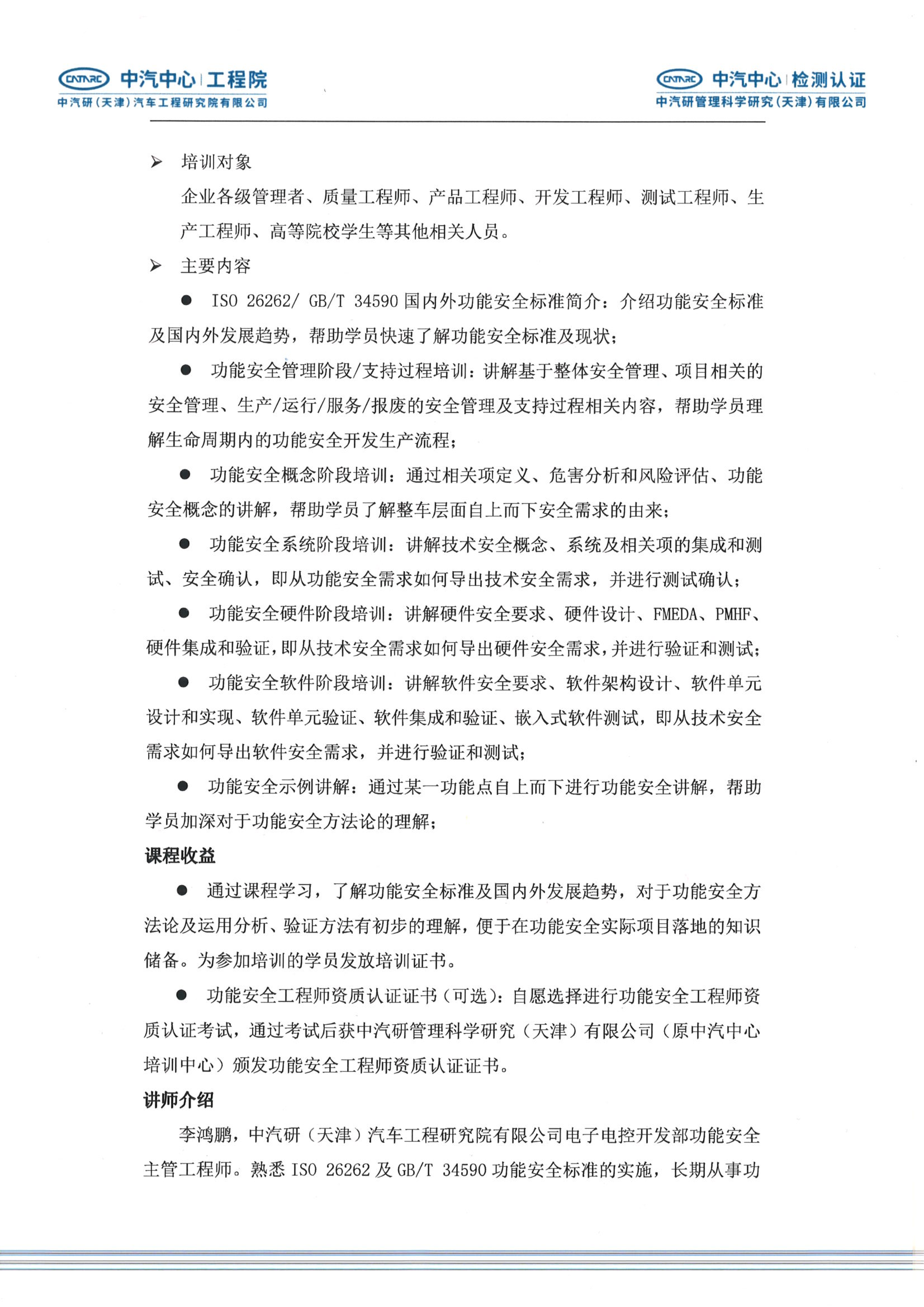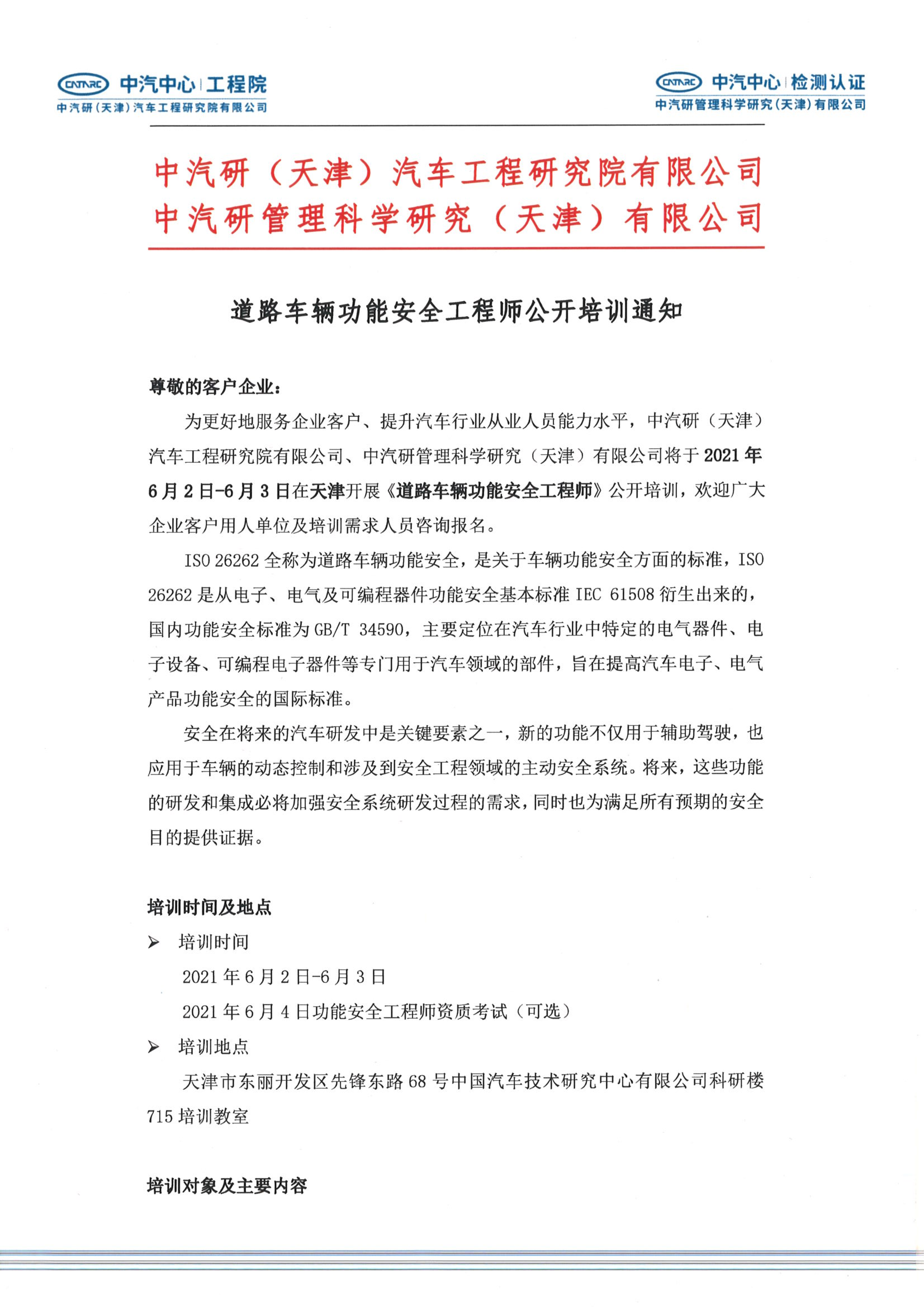 道路車(chē)輛功能安全工程師公開(kāi)培訓通知