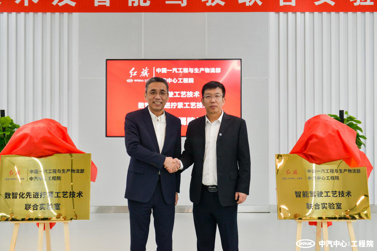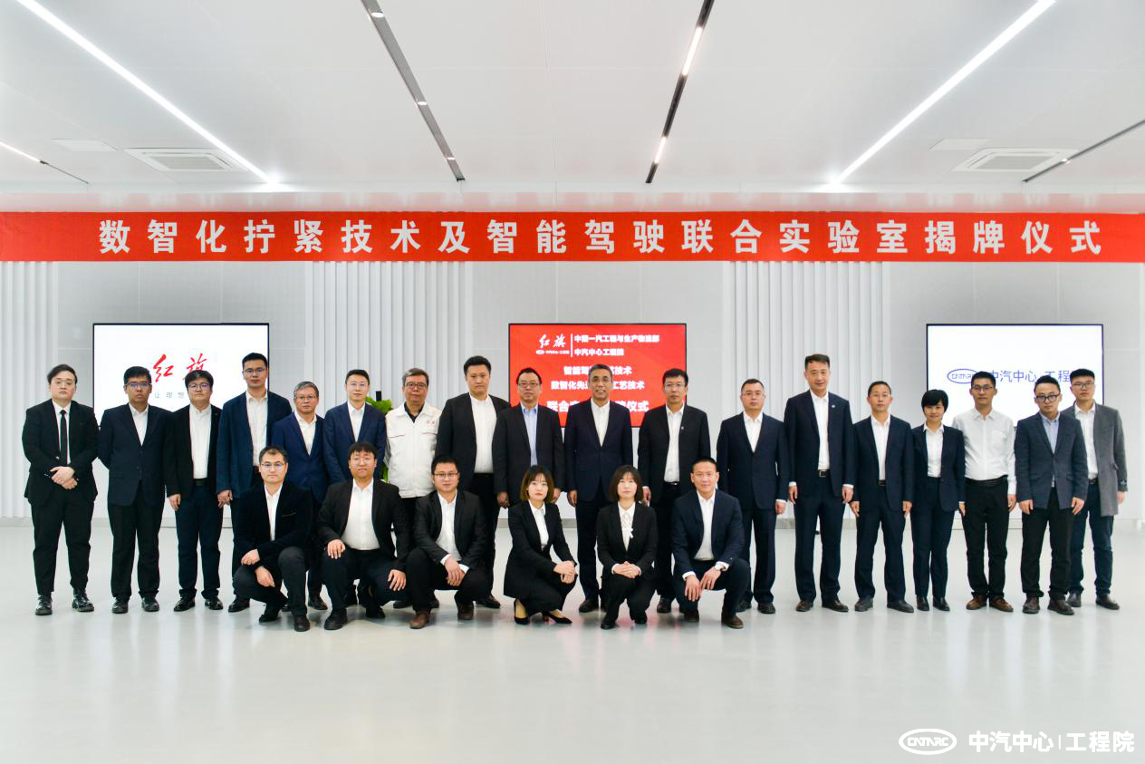 10月29日,中汽中心工程院與一汽集團工程與生產(chǎn)物流部在紅旗繁榮工廠(chǎng)舉行了總裝智能駕駛工藝技術(shù)及數智化擰緊工藝技術(shù)聯(lián)合實(shí)驗室揭牌儀式。中汽中心工程院總經(jīng)理王建海、一汽集團工程與生產(chǎn)物流部總經(jīng)理畢文權等領(lǐng)導出席儀式并為聯(lián)合實(shí)驗室揭牌。