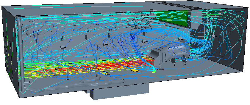 圖6 環(huán)境風(fēng)洞和環(huán)境艙氣流跡線(xiàn)圖(目標風(fēng)速120km/h)