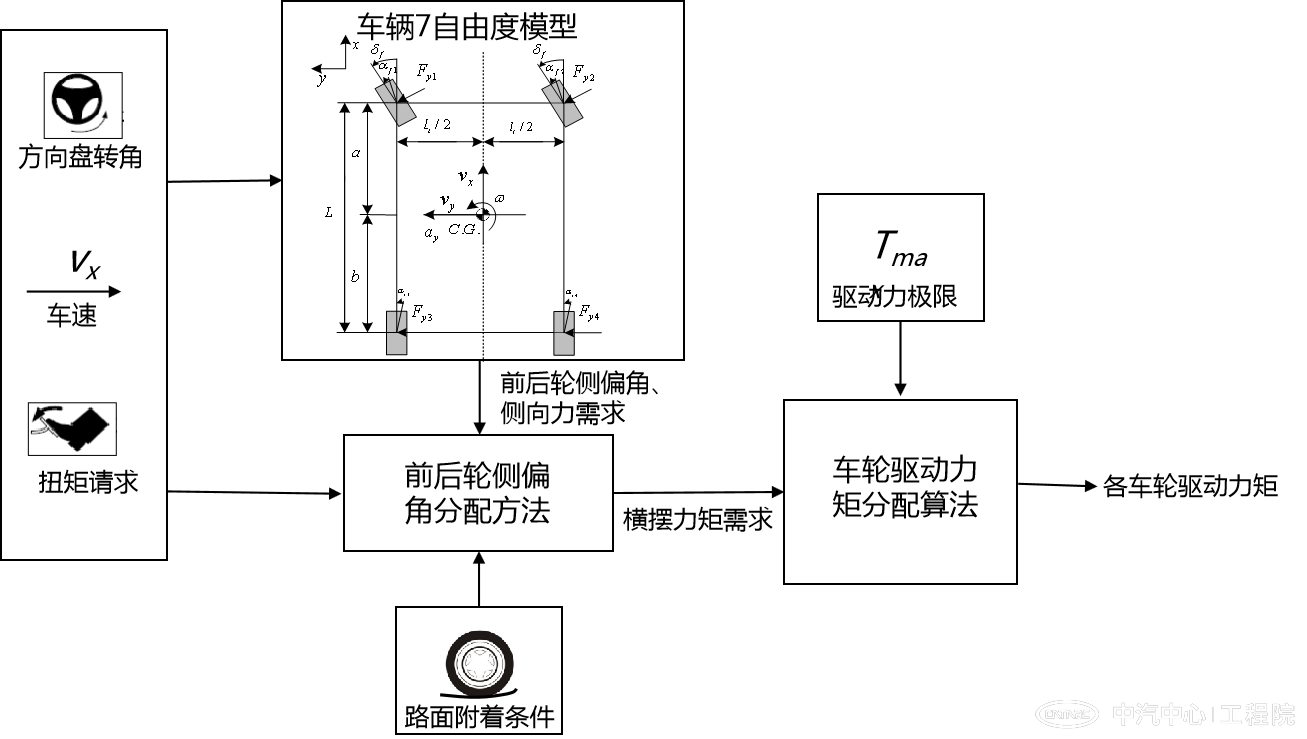 圖2 - 四輪分布式驅動(dòng)扭矩矢量分配原理