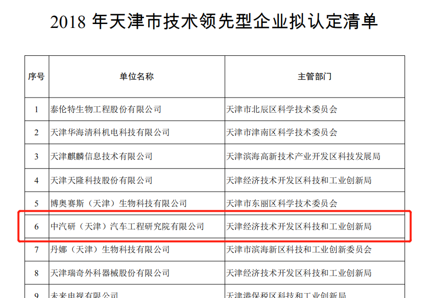 近日,天津市科學(xué)技術(shù)局公布“2018年天津市技術(shù)領(lǐng)先型企業(yè)擬認定名單”,中汽研(天津)汽車(chē)工程研究院有限公司(以下簡(jiǎn)稱(chēng)“中汽研公司”)成功入選。