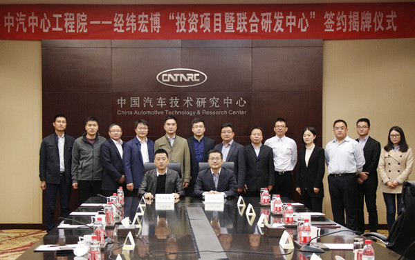 2017年4月7日,中國汽車(chē)技術(shù)研究中心(下稱(chēng)“中汽中心”)汽車(chē)工程研究院(下稱(chēng)“工程院”)與江蘇經(jīng)緯宏博汽車(chē)零部件股份有限公司(下稱(chēng)“經(jīng)緯宏博”)“投資項目暨聯(lián)合研發(fā)中心”簽約揭牌儀式成功舉行。江蘇省常州市金壇經(jīng)濟開(kāi)發(fā)區副書(shū)記王勇、金壇區紀委主任蔣志軍、金壇區經(jīng)貿局局長(cháng)黃建南,經(jīng)緯宏博董事長(cháng)王金芳、經(jīng)緯宏博總經(jīng)理蔡雨宏,中汽中心工程院院長(cháng)高繼東、副院長(cháng)龔進(jìn)峰、總工程師李洪亮,璦睿投資管理有限公司總經(jīng)理胡濟民,常州開(kāi)發(fā)部主任田涌君等領(lǐng)導參加了儀式。