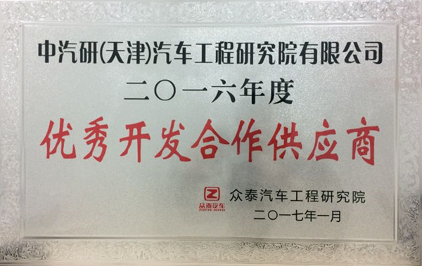 2017年1月18日,中汽中心汽車(chē)工程研究院(以下簡(jiǎn)稱(chēng)“工程院”)被眾泰汽車(chē)評為“2016年度優(yōu)秀開(kāi)發(fā)合作供應商”。工程院系連續兩年獲此殊榮,這不僅是對工程院技術(shù)服務(wù)能力的充分肯定,同時(shí)為雙方后續 的 合作奠定了堅實(shí)的基礎。