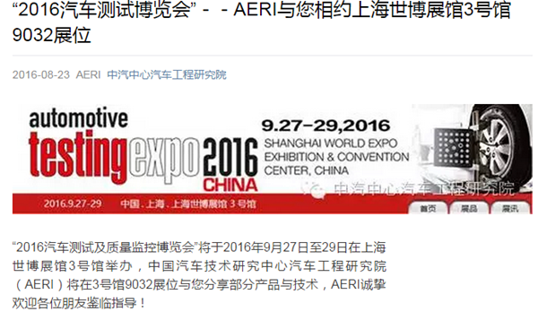 2016汽車(chē)測試博覽會(huì ) - - 工程院與您相約上海世博展館3號館9032展位