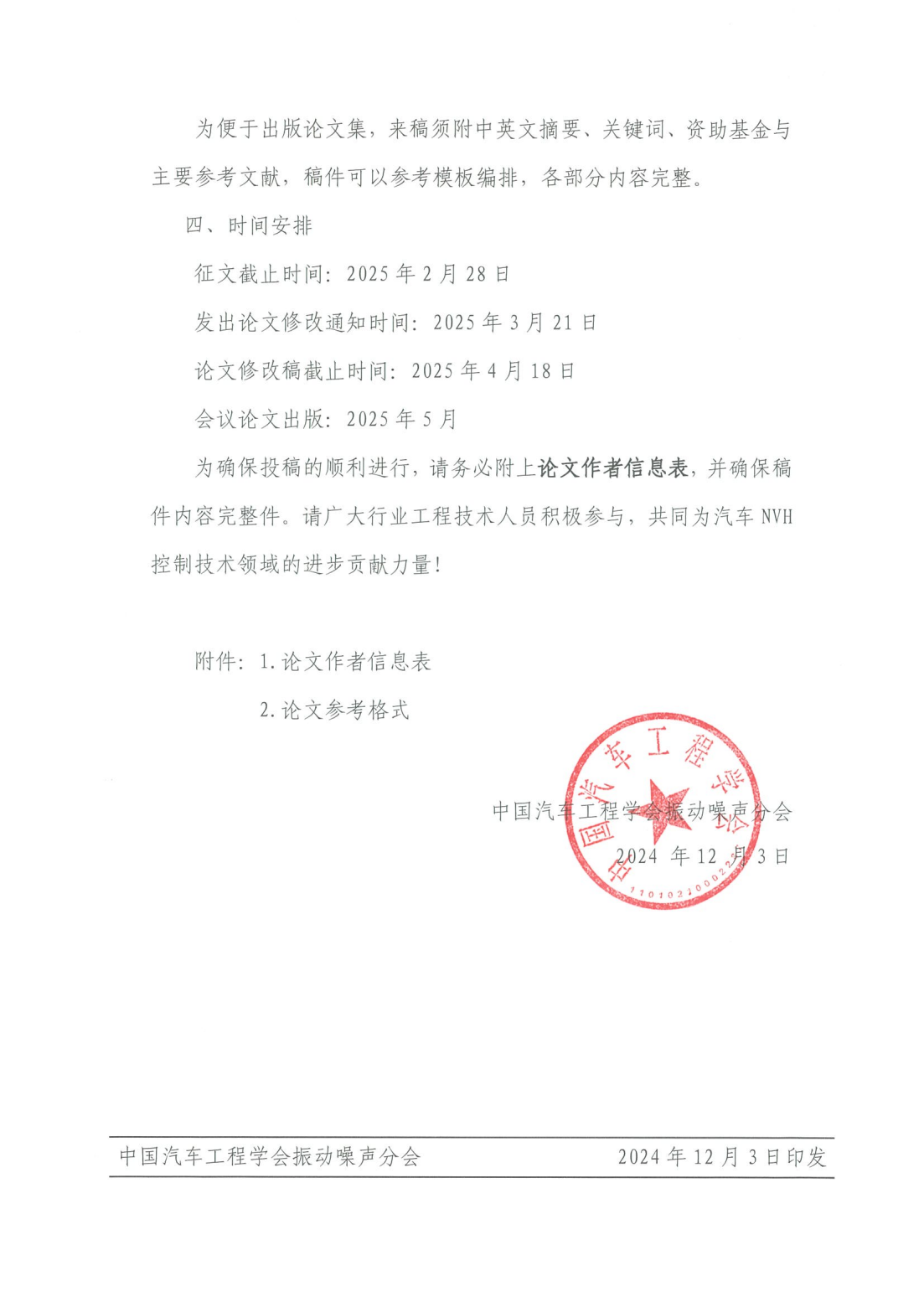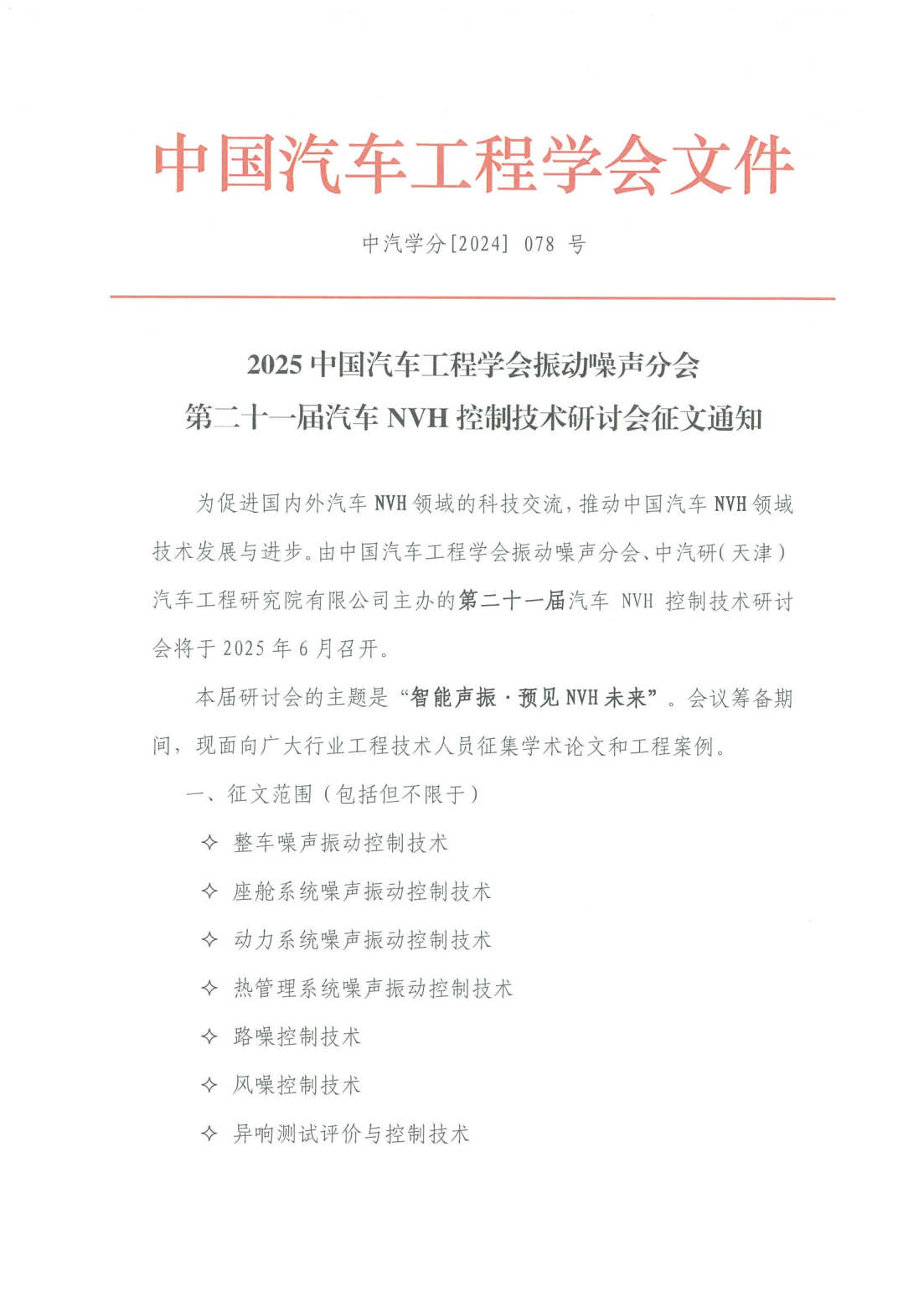 2025中國汽車(chē)工程學(xué)會(huì )振動(dòng)噪聲分會(huì )第二十一屆汽車(chē)NVH控制技術(shù)研討會(huì )征文啟事