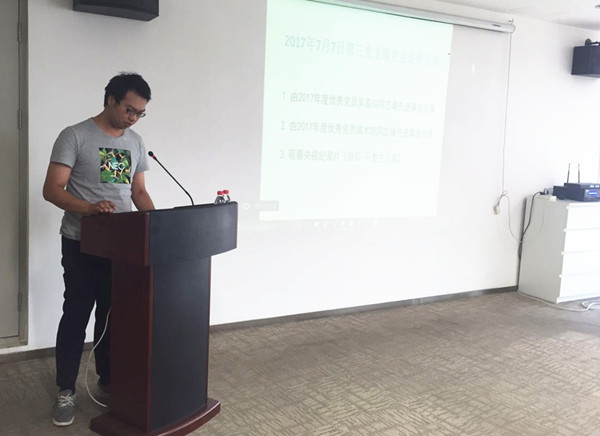 2017年7月7日上午10:00在中汽中心主樓七樓715會(huì )議室,由汽車(chē)工程研究院黨總支第三黨支部書(shū)記馬杰同志主持,2017年度優(yōu)秀黨員吳春玲同志和端木瓊同志分別向第三黨支部24名參會(huì )黨員作了先進(jìn)事跡分享。