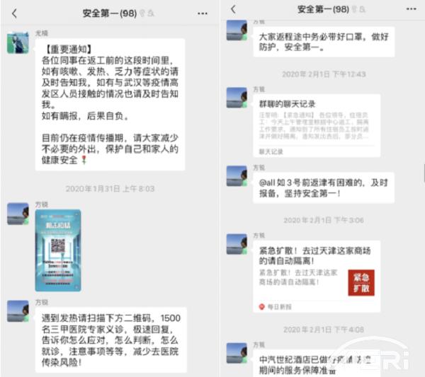 1月22日春節放假前,黨支部在關(guān)注到疫情的動(dòng)態(tài)后,及時(shí)在部門(mén)群里通知全體員工做好外出的衛生防護工作。1月23日-27日,黨支部時(shí)刻關(guān)注疫情發(fā)展,在部門(mén)群里宣貫關(guān)于疫情防控的有關(guān)通知,保障全體職工掌握工程院各項舉措的落實(shí)。