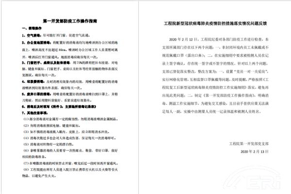 2月11日,黨支部向部門(mén)內醫護人員特別是一線(xiàn)醫護人員家屬、社區工作人員家屬、警察家屬的同事給予關(guān)懷和照顧,解決在生活和工作上的困難。2月12日,針對工程院紀委就疫情防控工作的監督檢查反饋意見(jiàn)在第一時(shí)間進(jìn)行整改,制訂《第一開(kāi)發(fā)部防疫工作操作指南》,明確劃分“黨群關(guān)愛(ài)小組”,實(shí)行網(wǎng)格化管理,充分發(fā)揮全體黨員的先鋒模范作用,監督全體復工員工佩戴口罩、按時(shí)消毒等工作,帶動(dòng)部門(mén)全體員工嚴格落實(shí)《工程院復工后新型冠狀病毒肺炎疫情防控工作實(shí)施細則》。2月20日,黨支部組織全體黨員、入黨積極分子和入黨申請人在學(xué)習強國APP線(xiàn)上進(jìn)行關(guān)于習近平總書(shū)記對于疫情防控的指示批示精神的學(xué)習,并完成相關(guān)專(zhuān)項答題。