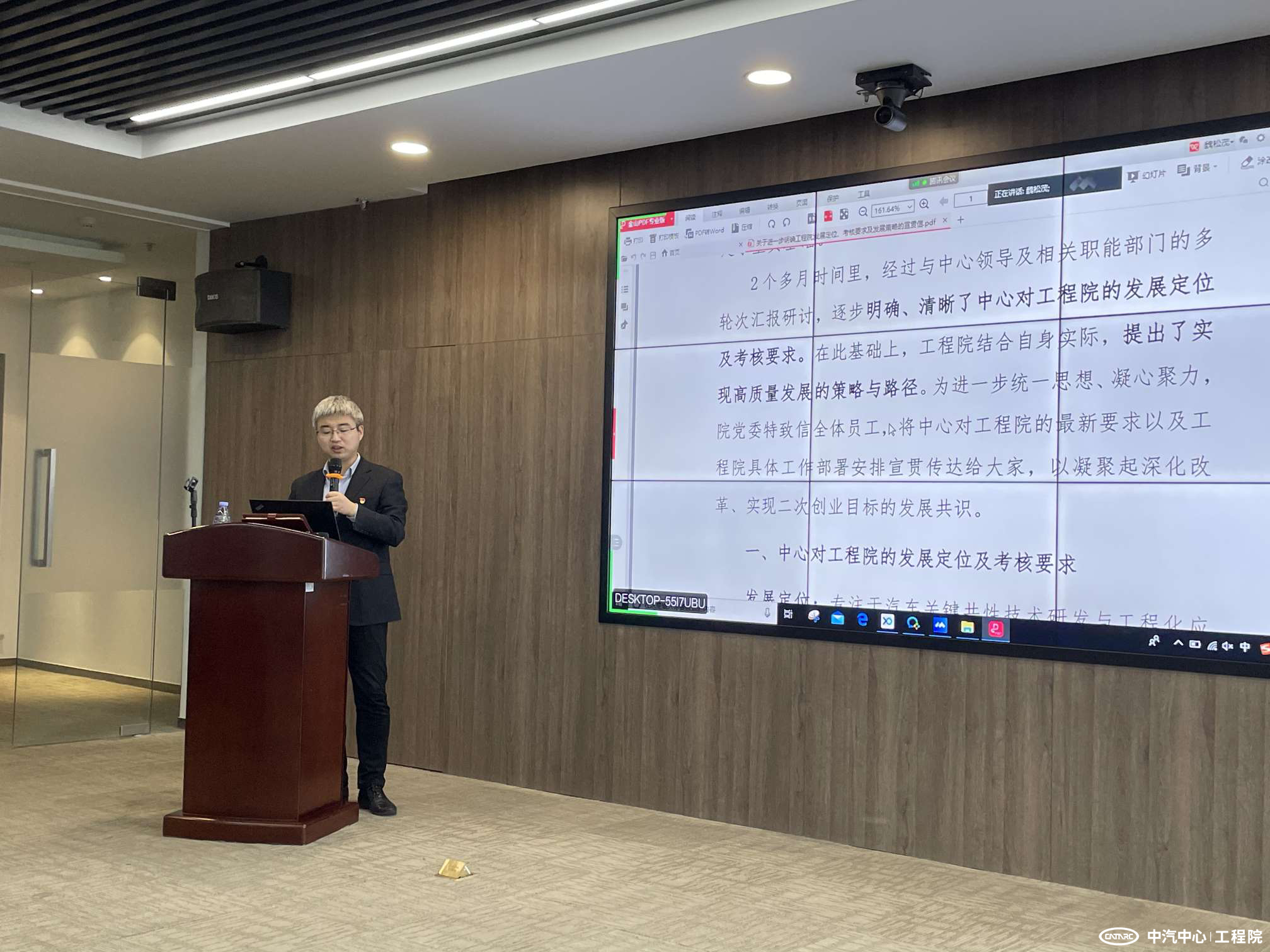 2020年12月23日,工程院黨委委員、副院長(cháng)戎輝到第七支部講授“貫徹十九屆五中全會(huì )精神,做好第十四個(gè)五年規劃”專(zhuān)題黨課,支部全體黨員、共青團員、入黨積極分子、入黨申請人及員工代表參加了學(xué)習。